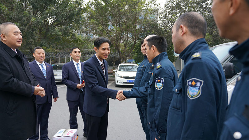 隨后,袁剛董事長一行來到公司直屬中隊(duì)前門崗,問候了在崗執(zhí)勤崗的所有同志,將方便面、瓜子、糖果等慰問物資發(fā)到他們手中,并代表集團(tuán)公司黨委對他們堅(jiān)守崗位,維護(hù)集團(tuán)公司大院安全工作所付出的努力表示感謝,希望他們繼續(xù)保持和發(fā)揚(yáng),進(jìn)一步做好大院內(nèi)的安全保衛(wèi)工作。