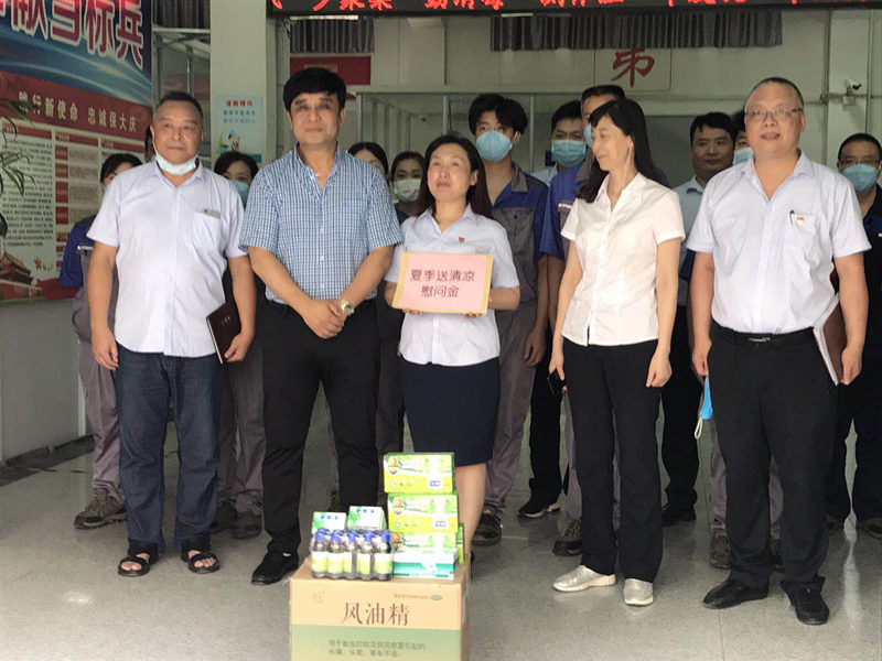 2020年7月23日,集團(tuán)公司黨委委員、副總經(jīng)理、工會(huì)主席吳鋼攜同人力資源部部長(zhǎng)、工會(huì)副主席肖亞方一行3人到路易通公司開展“夏季送清涼”慰問。在生產(chǎn)車間,吳主席親手把防暑降溫物資和慰問金送到員工手中,把集團(tuán)黨委和集團(tuán)工會(huì)的關(guān)心關(guān)愛送到員工身邊。