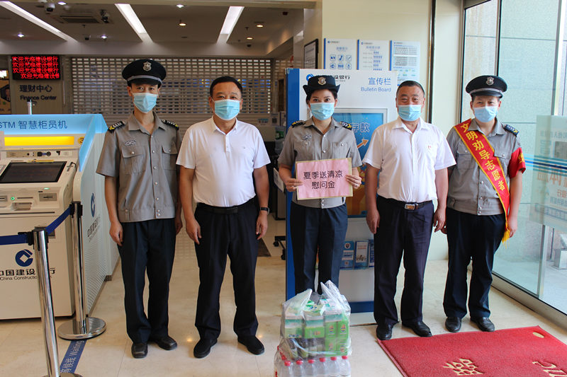 孫總一行前往公司派駐合川建行執(zhí)勤分隊,代表集團黨委對在高溫季節(jié)堅守崗位的一線員工,送去了慰問金和防暑降溫藥品。在慰問中,孫總與一線員工進行交流,詳細詢問了大家的工作和生活情況,并叮囑大家要做好防暑降溫工作,確保日常勤務(wù)的正常開展。孫總強調(diào),開展“夏送清涼”活動是集團公司的優(yōu)良傳統(tǒng),體現(xiàn)了組織對一線員工的關(guān)愛,并要求合川公司:一是要常態(tài)化抓疫情防控工作,收集疫情防控中的好人好事,做好正面的宣傳報道;二是掌握員工的思想動態(tài),了解員工所思所想,為員工排憂解難;三是要結(jié)合夏季高溫天氣的特點精心組織開展慰問活動,關(guān)心員工身心健康。
