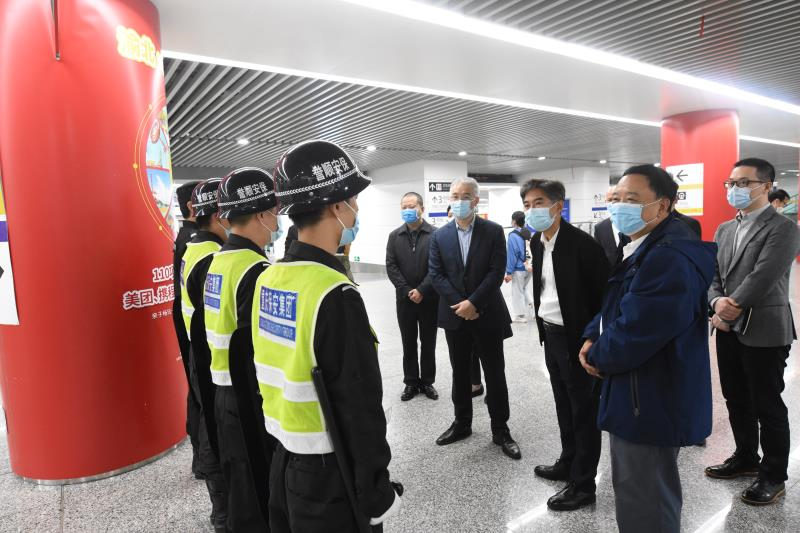 在軌道三號線重慶北站,封局長與隊(duì)員們親切交談,對他們在工作中熱情服務(wù)、忠于職守、認(rèn)真履職給予充分肯定,并要求各級領(lǐng)導(dǎo)要深入關(guān)心關(guān)愛一線員工。袁剛董事長檢查了隊(duì)員的裝備、著裝等,要求大家要時(shí)刻保持警惕,特別是節(jié)日期間要更加注重疫情防控安全,進(jìn)一步加強(qiáng)人員管理,把責(zé)任落實(shí)到位,每一個(gè)細(xì)節(jié)都不能大意,杜絕松懈麻痹思想,做到萬無一失,并希望大家繼續(xù)以良好的精神面貌和優(yōu)質(zhì)的服務(wù),保障軌道安全。