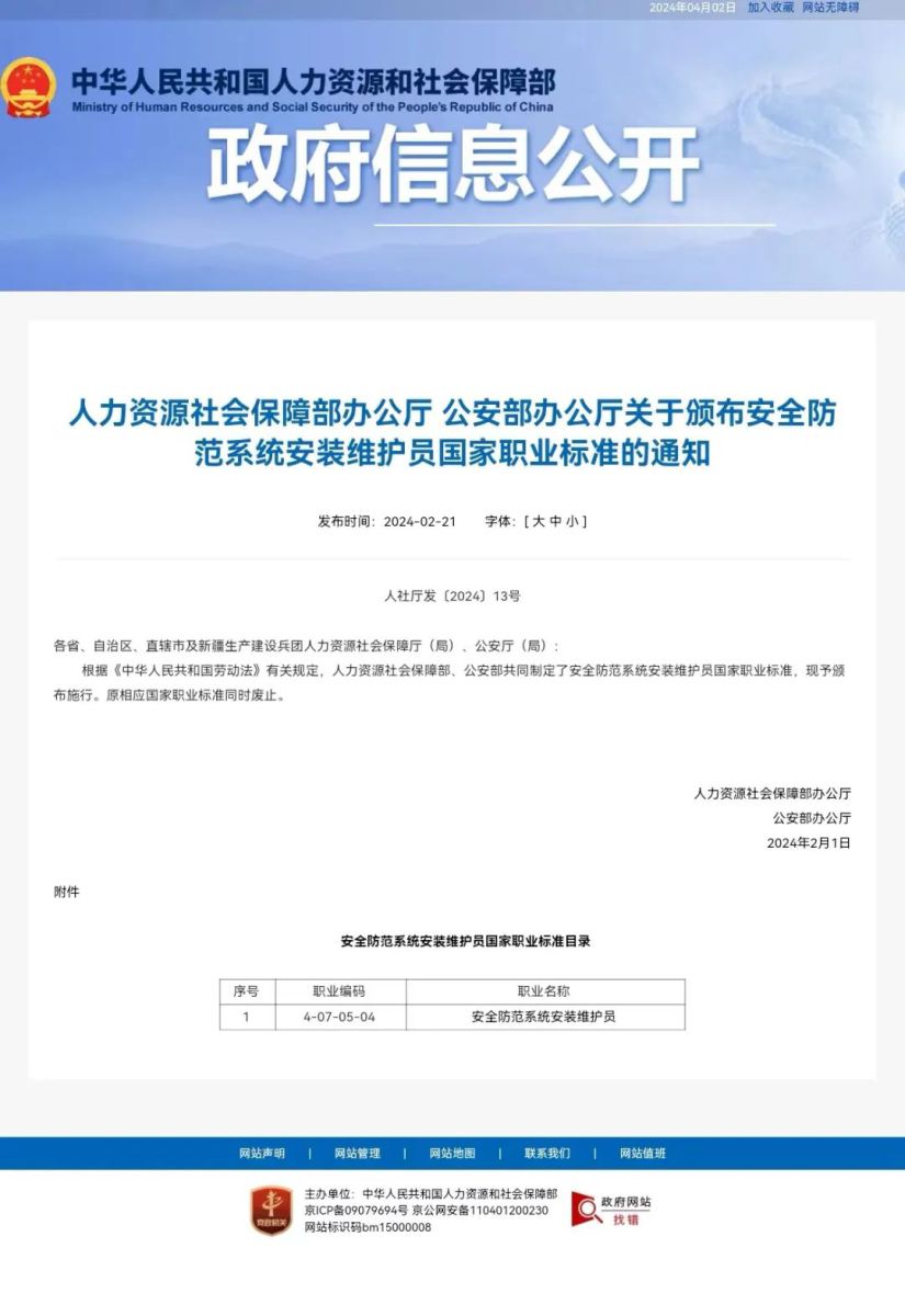 安全防范系統(tǒng)安裝維護(hù)員國家職業(yè)標(biāo)準(zhǔn)正式發(fā)布